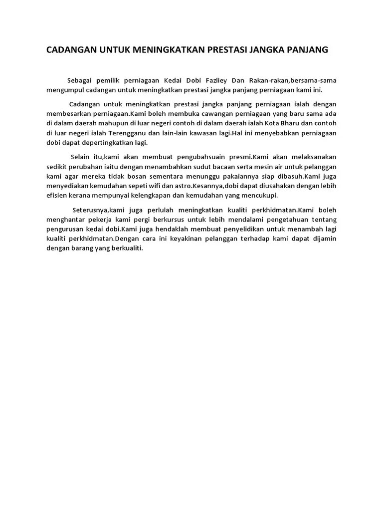 Cadangan Jangka Panjang : Ejercicio De Lkpd Palip 2. Untuk meningkatkan prestasi semasa perniagaan, saya bercadang untuk melaksanakan beberapa tindakan seperti: . Cadangan meningkatkan prestasi jangka panjang kedai dobi. Cadangan untuk meningkatkan prestasi semasa dan jangka panjang perniagaan adalah . (a) mengurangkan kos operasi.melalaui kaedah ini,saya . 21 cadangan rumusan docx cadangan untuk meningkatkan prestasi perniagaan jangka pendek i mengadakan promosi jualan besar dengan adanya promosi lebih course. (r) cadangan jangka pendek dan cadangan jangka panjang dan (s) rumusan.